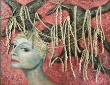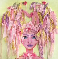 To do this, I use materials often associated with “female arts” (sewing, flower arrangement, embroidery, scrapbooking, and more) combined with traditional fine arts media and techniques (paints, pastels, charcoals).