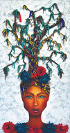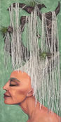 I read several articles about women who braided rice into their hair and their children’s hair when sold into slavery. This ensured that their children would have something to eat if they were separated, gave them agency to plant their own crops in their new home, and a way to keep their culture alive. It was due to the skill and knowledge of these women that the rice crops prospered. The Protector honors these women and their resilience. She is the goddess that keeps watch on those most in need of assistance.