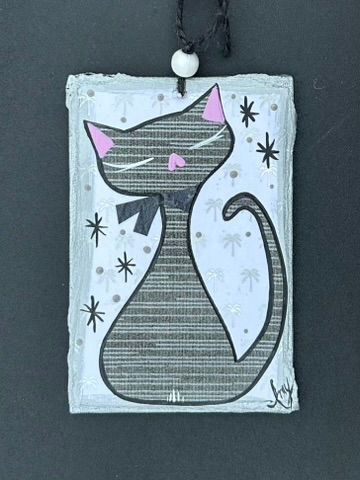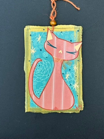 4" X 6" Mixed Media Cat Sunset Stripes