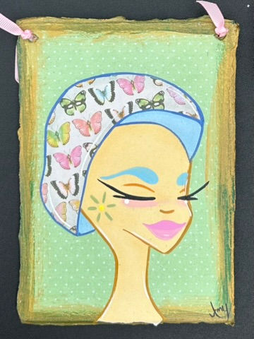 5" X 7" Mixed Media Mushroom Girl Butterflies