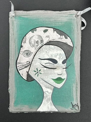 5" X 7" Mixed Media Mushroom Girl with Skulls