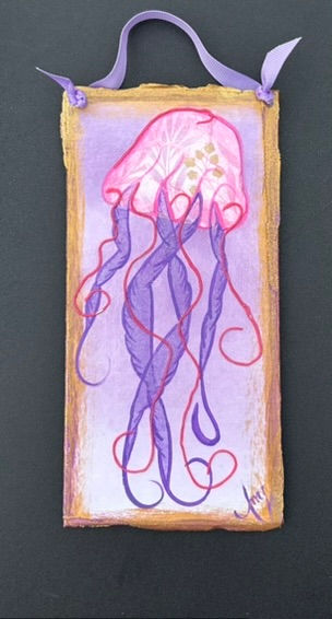 4" X 8" Mixed Media Jellyfish Pinks and Purples